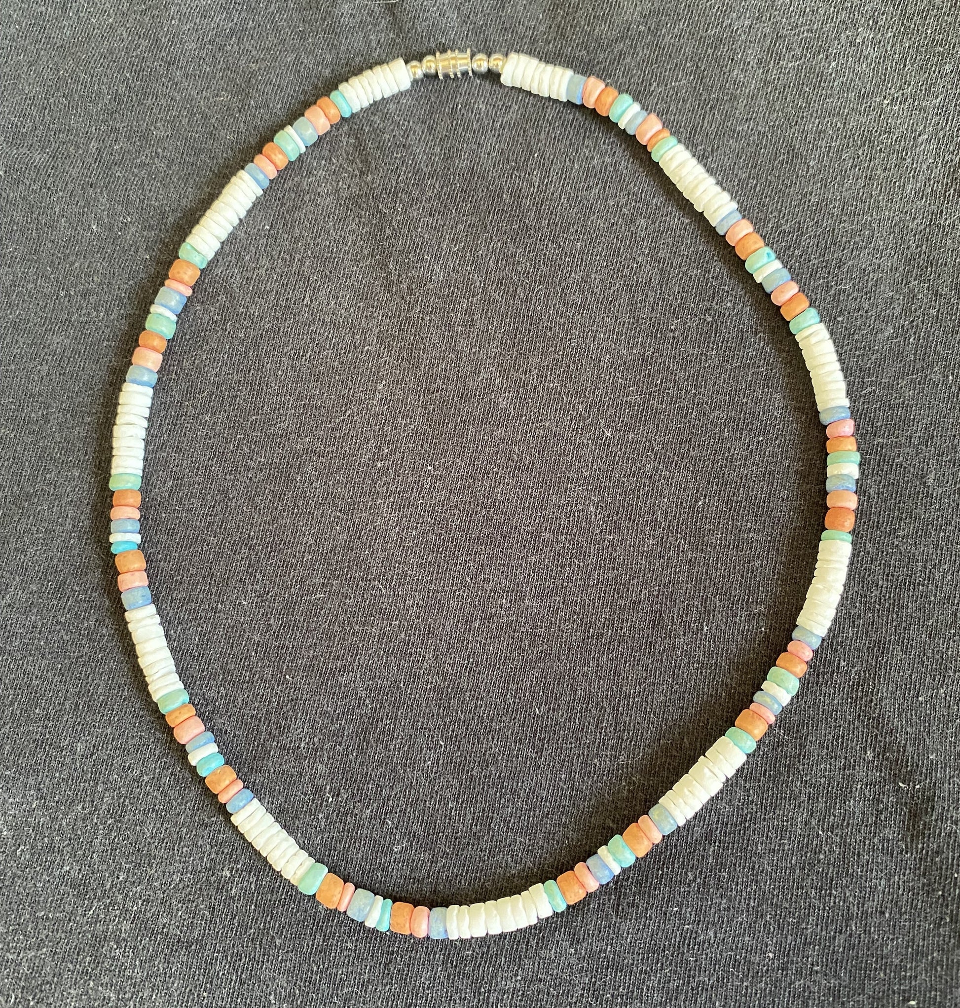 Happy Girl Shell Necklace is 18" in length, 6mm shell with metal screw clasp. Really cute Surfer Girl accessory comes multi-color as shown. Pink, Brown, Blue, Green, Grey & White